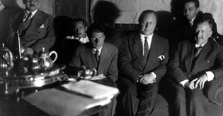 Robert Liebmann, Josef von Sternberg, Carl Zuckmayer, Emil Jannings, Erich Pommer, Heinrich Mann (v.l.n.r.) (Dreharbeiten)