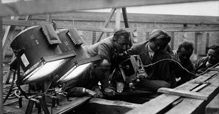 Gerhard Lamprecht, Werner Brandes, Werner Schlichting (1.-3.v.l.) (Dreharbeiten)