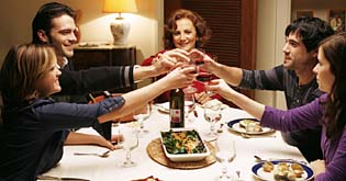 Szene mit Giulio Berruti (2.v.l.), Elena Irureta (Mitte), Unax Ugalde (2.v.r.), Nora Tschirner (rechts)