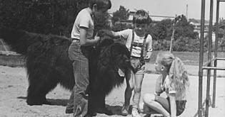 Der Junge mit dem großen schwarzen Hund