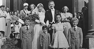Szene mit Urs Heß, Ruth Leuverik, Oliver Grimm, Dieter Borsche, Angelika Voelkner, Migg Heß (vorne, v.l.n.r.)
